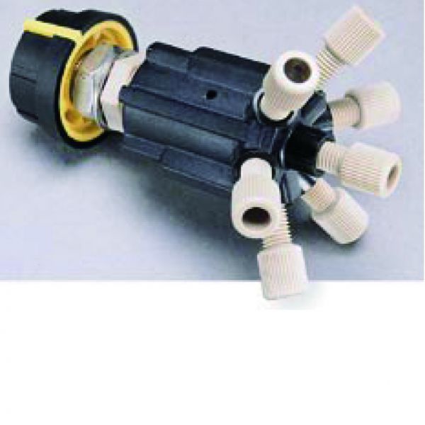 我们的六端口中压喷射阀设计成每个端口连接到相邻的端口。额定压力可达1000psi (69bar)的理想阀门。这些阀门的液端材质是耐化学性的Teflon和Vespel。每个阀包括1/16”或者1/8”外径管的1/4-28接头配件。